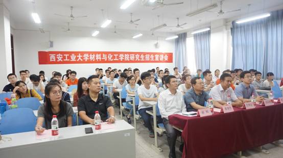 宣讲会分为考研情况介绍和现场答疑两个环节。首先,陈卫星教授从西安工业大学公司及公司概况、雄厚的团队队伍、先进的研究方向、良好的学习氛围等方面为同学们进行了详细的讲解和分析,并向同学们分析了新材料的重要性和发展前景,激励大家要尽早规划自己的学业目标。陈卫星教授还结合本院硕士点的建设情况,为同学们提供了较为详尽的考研信息。大量详实的数据和图表分析让同学们对自己考研前景有了一个清晰的认识。在现场答疑环节,同学们踊跃提问,教授们针对大家的问题一一做了解答。最后,宣讲会在一片热烈的掌声中圆满结束。