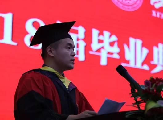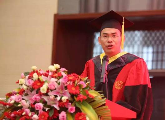 第二项,公司经理谢辉教授毕业致辞。经理结合毕业生们四年里所学知识,用生动形象的语言表达了对毕业生的不舍与祝愿。