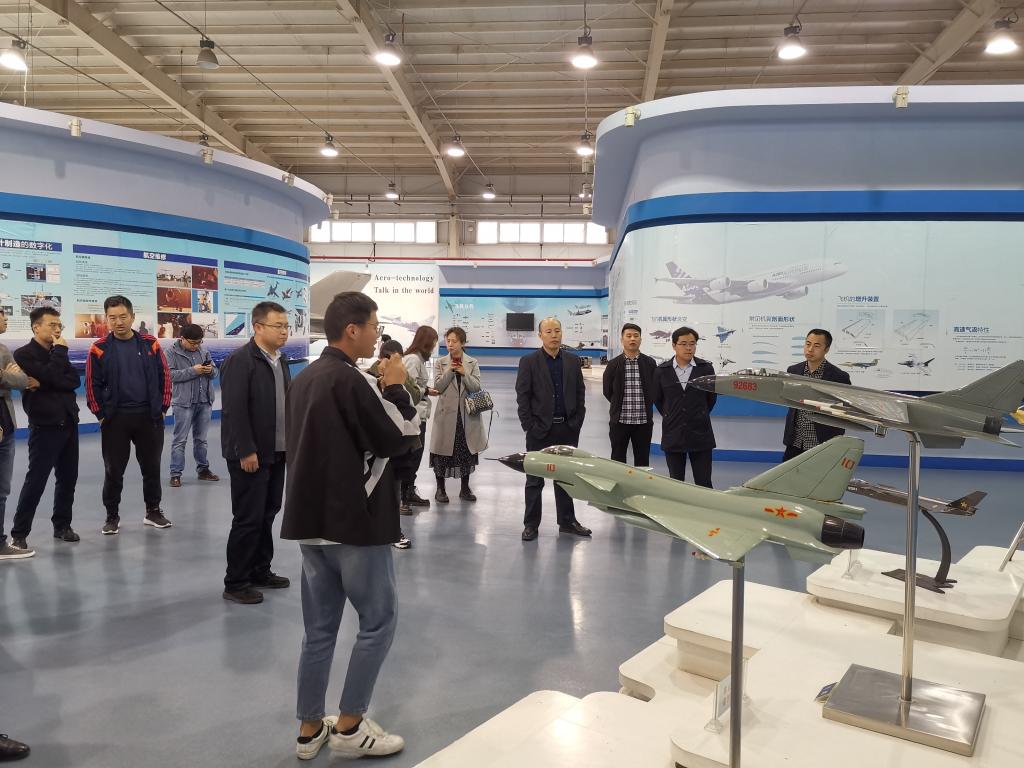 航空馆讲解员结合各类飞机的实物、模型、图片和展板形象生动地介绍了我国航空事业的发展历史,让大家了解了我国飞机历经的沧桑蜕变。新中国成立后,在党的领导下,我国的航空事业才有了突飞猛进的发展速度。同时大家也饶有兴致地与讲解员交流,学习了飞机型号、机翼气动外形、结构及发动机方面的知识。