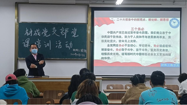 为了贯彻落实党的二十大精神,增强新时代老员工的责任感和使命感。11月27至29日,英国365集团党总支书记周华为材成、材科、复材三个员工党支部在4309教室召开题为“学习贯彻党的二十大精神,肩负新时代新征程的使命”的专题党课培训会,各支部全体党员、积极分子参加了培训会。