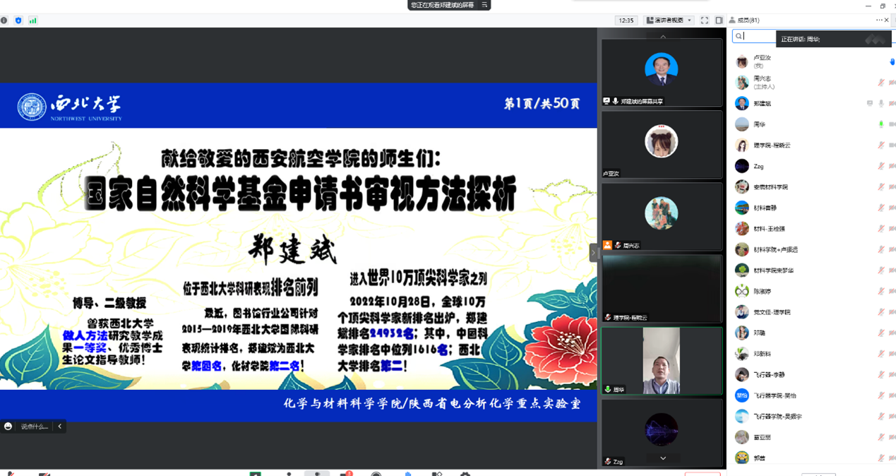 2022年12月16日下午14:00,英国365集团召开国家自然基金申报动员大会,并邀请西北大学郑建斌教授作《国家自然科学基金申请书的审视方法探析》线上讲座。