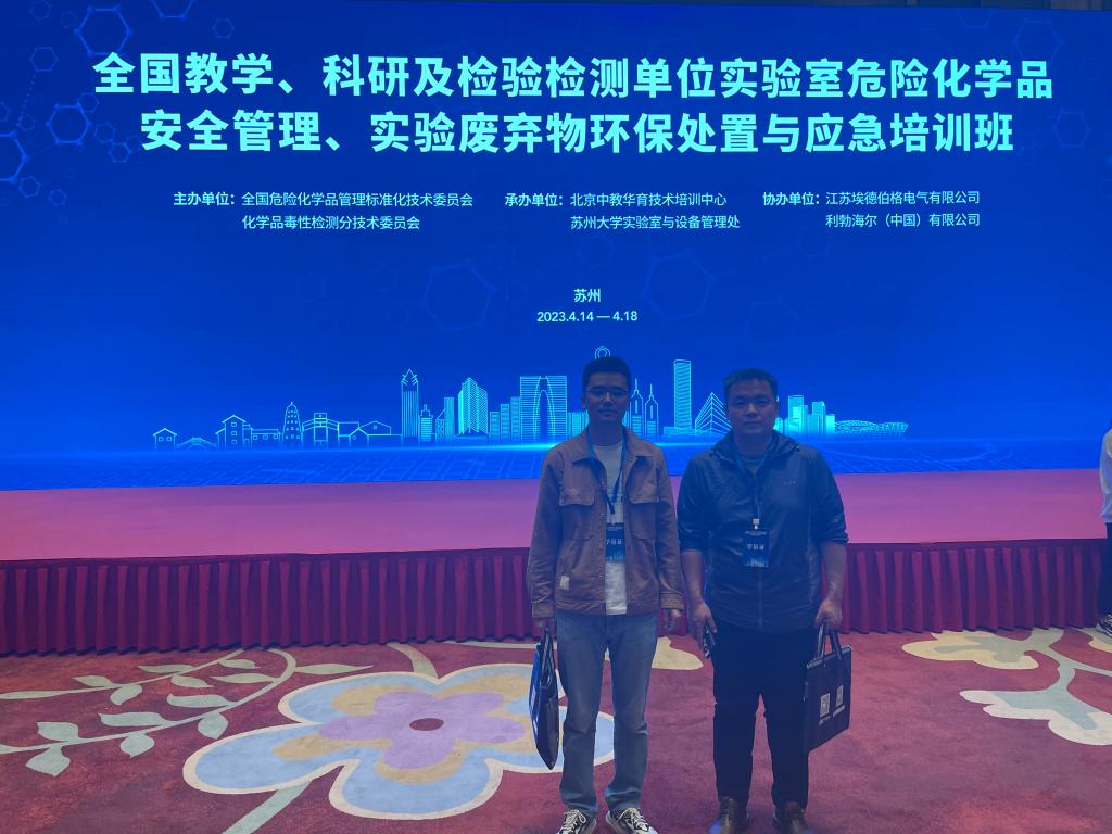 2023年4月14日——4月18日,由全国危险化学品管理标准化技术委员会和化学品毒性检测分技术委员会联合举办的“全国教学、科研及检验检测单位实验室危险化学品安全管理、实验废弃物环保处置与应急培训班”在苏州成功举行。材料实验研究中心李兆老师和杨超群老师参加本次培训。