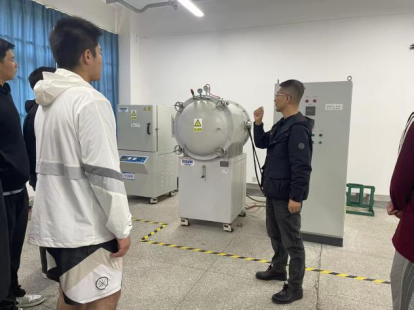 活动期间,由实验中心教师负责讲解。各个讲解老师结合学科特色与实验教学需求,带领新生依次参观了材料制备、性能检测、组织分析与表征等核心实验室。讲解过程中,实验中心教师不仅详细介绍了扫描电子显微镜、万能材料试验机等大型精密仪器的功能与应用场景,还通过通俗的语言解读了材料研发从样品制备到性能测试的完整流程,将抽象的专业概念转化为直观的实验场景。在参观过程中,面对新鲜的实验设备,新生们表现出了浓厚兴趣,不时围绕“仪器工作原理”、“专业学习与实验的关联”等问题与实验中心教师互动。
