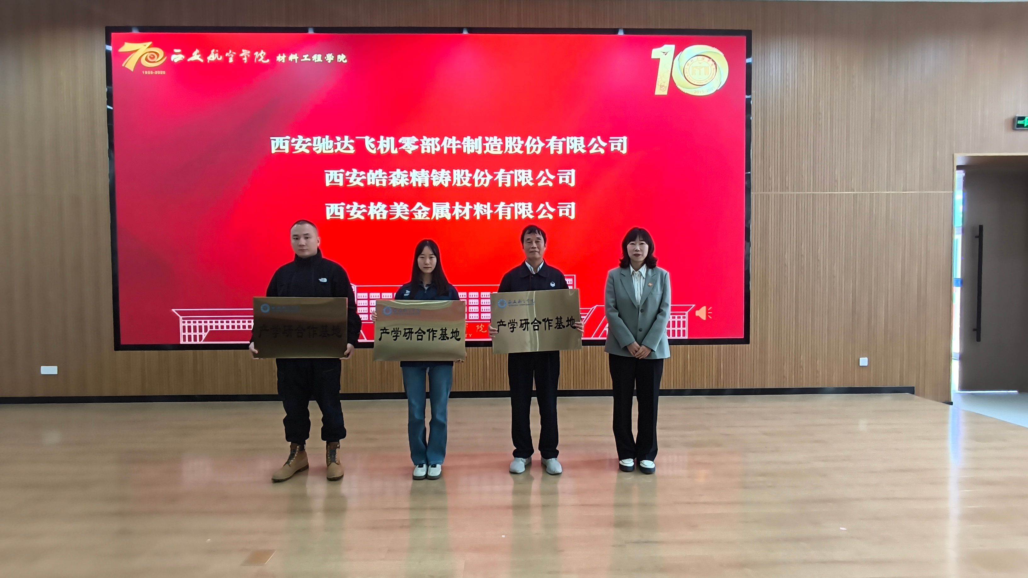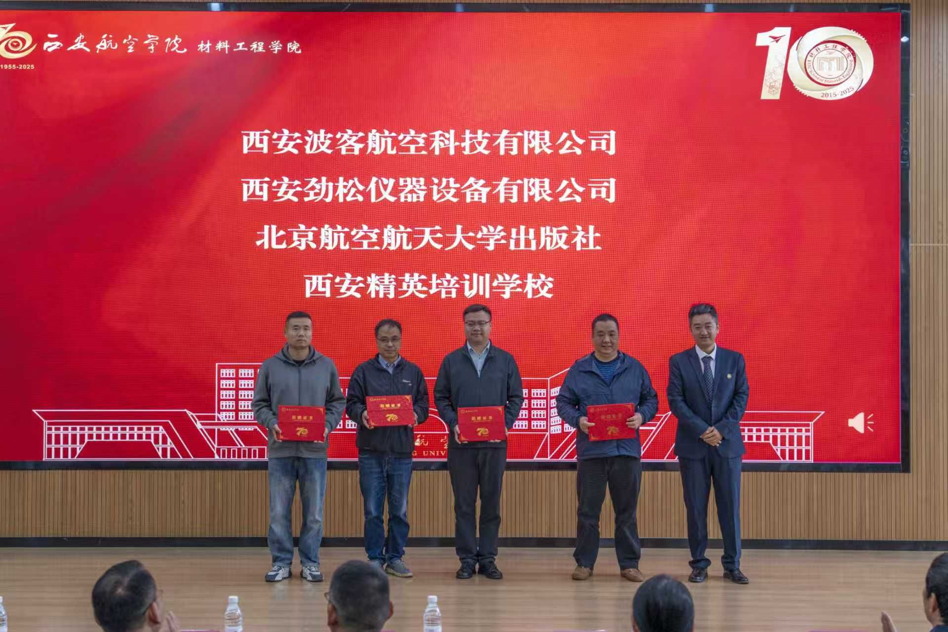深化产教融合、服务航空产业是公司一贯的办学特色。公司为陕西思诺智造科技有限公司等校庆捐赠单位颁发了证书,为西安驰达飞机零部件制造股份有限公司等五家优秀合作企业进行了“产学研合作基地”授牌,并聘请了多位优秀员工担任“员工导师”,初步构建起“企业-员工-集团”协同发展共同体,为应用型人才培养和科技成果转化拓展了更广阔的平台。