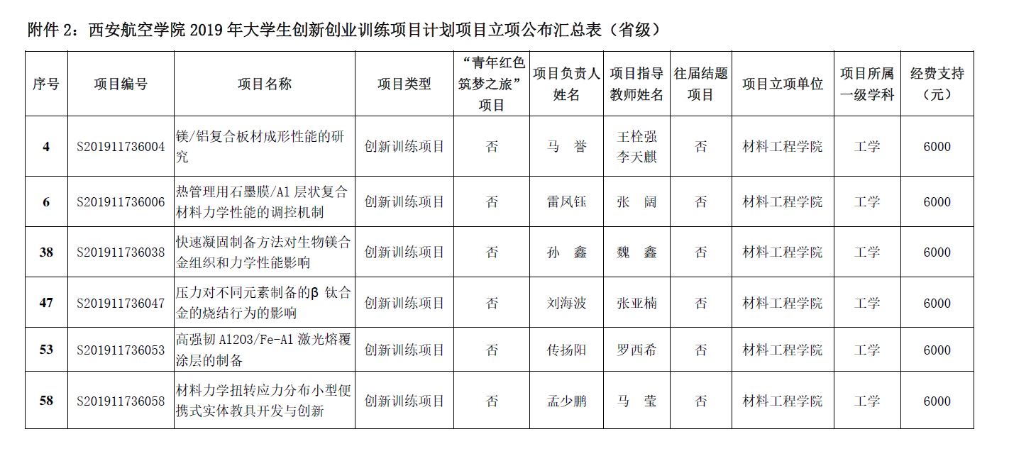 按照《关于做好2019年老员工创新创业训练计划项目申报工作的通知》(西航创字〔2019〕5号),经专家评议,同时依据陕西省教育厅《关于公布2019年省级老员工创新创业训练计划项目的通知》(陕教高办〔2019〕17号)文件,现将公司2019年老员工创新创业计划训练项目(简称大创项目)立项结果公布如下: