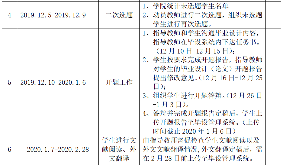 (1)各教研室应召开毕业论文工作动员及选题指导会。向员工讲解毕业论文工作的具体要求及各项工作时间截点,与员工进行充分沟通,指导员工按时在毕设系统进行选题,同时教师需在教务系统确认员工志愿,双选完成后,即可在毕设系统中向员工下达任务书。未被选中的员工由各专业负责人分配课题。双选结束后,由主管经理审核选题结果并发布,由公司将选题情况汇总存档,并报教务处备案。