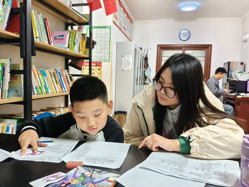 活动首环节聚焦学业帮扶,经验丰富的志愿者们采用“一对一+小组辅导”模式,针对语文、数学等学科的周末作业,为孩子们开展知识答疑、重点梳理,细致解决作业中的疑难问题。从生字书写规范到数学解题思路,志愿者们耐心引导、逐步拆解,帮助孩子们高效完成作业的同时,巩固了当日所学。不少原本对难题“犯愁”的孩子,在志愿者的讲解下逐渐理清思路,脸上也露出了自信的笑容。