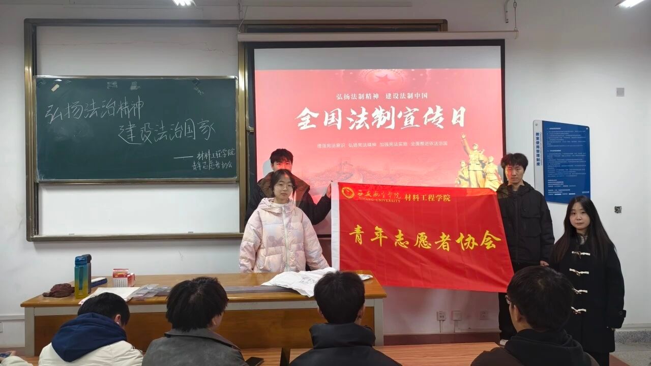 为普及法律知识,弘扬法治精神,公司青年志愿者协会于12月4日,在四号实验楼4307教室进行了“弘扬法治精神,建设法治中国”法治宣讲活动。