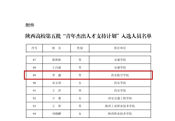 公司教师李鑫获批入选陕西高校第五批“青年杰出人才支持计划”