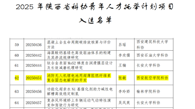 近日,陕西省科学技术协会公布了2025年陕西省科协青年人才托举计划项目评审结果,公司青年教师张敏成功入选。